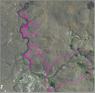 Spent all of last week on the Owyhee. Many rim hikes and a few forays down to the wet stuff. The latter with Liz and her students. Learned alot. Found a fault in Sweetwater Canyon (that between Jordan Creek and Hike-out Camp). Determined that the once 'dreaded' rim gravels are really the 'shockingly voluminous' rim gravels. As for the latter, there appears to be a culmination of aggradation on a platform at about 3900'. Multiple levels are present below this, mainly on the Artillery Rim. Found a tephra in a rare exposed section at the 3900' level near Owyhee Butte. Learned that the Heaven's Gate landslide complex (including an upper reach and a lower reach) is quite huge, particulary when viewed from the perspective of the canyon rim...wow. Can't imagine how this complex was not the source of multiple blockages and breaches. Liz nearly single-handedly augered a 4 m hole in a perfect closed depression. We found the Mazama, and certainly drilled into the late Pleistocene...but didn't find the fat tephra bed that we found in the slide below Bogus Point. For now, please view the following slide show for substantiation of most of the claims above (view in Google Maps or Google Earth for the full informative effect):